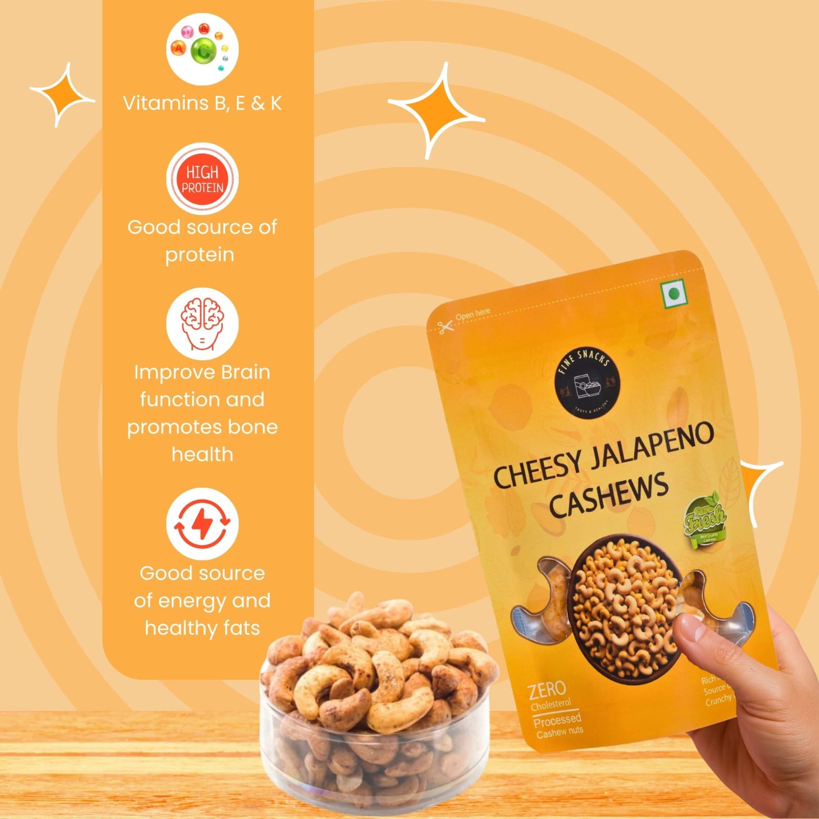 Expertly crafted with real jalapenos to provide a deliciously spicy flavor, our CHEESY JALAPENO CASHEWS are the perfect snack for any occasion. Made with high-quality cashews, these nuts are also a great source of healthy fats and protein, making them a satisfying and nutritious snack choice.